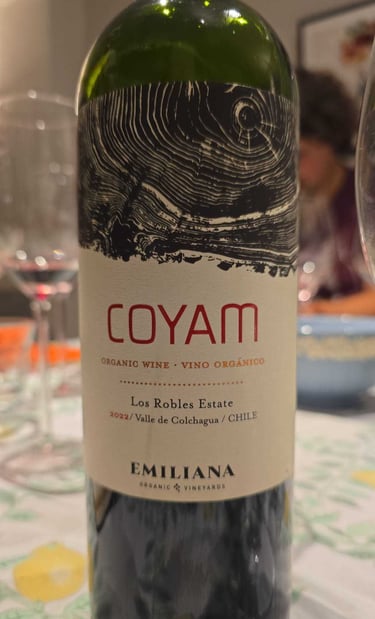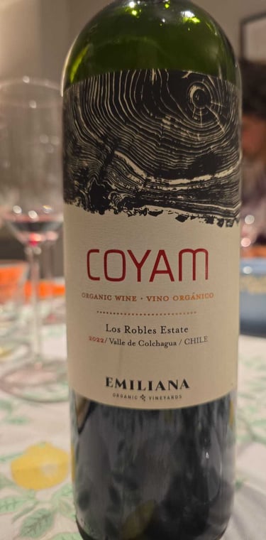 Coyam (Emiliana Organic Vineyards), Blend (38% Syrah, 34% Carmenère, 8% Cabernet Sauvignon, 7% Garnacha, 4% Carignan, 3% Mourvèdre, 2% Petit Verdot, 2% Tempranillo) Valle de Colchagua, Los Robles Estate, (Chili) 2022