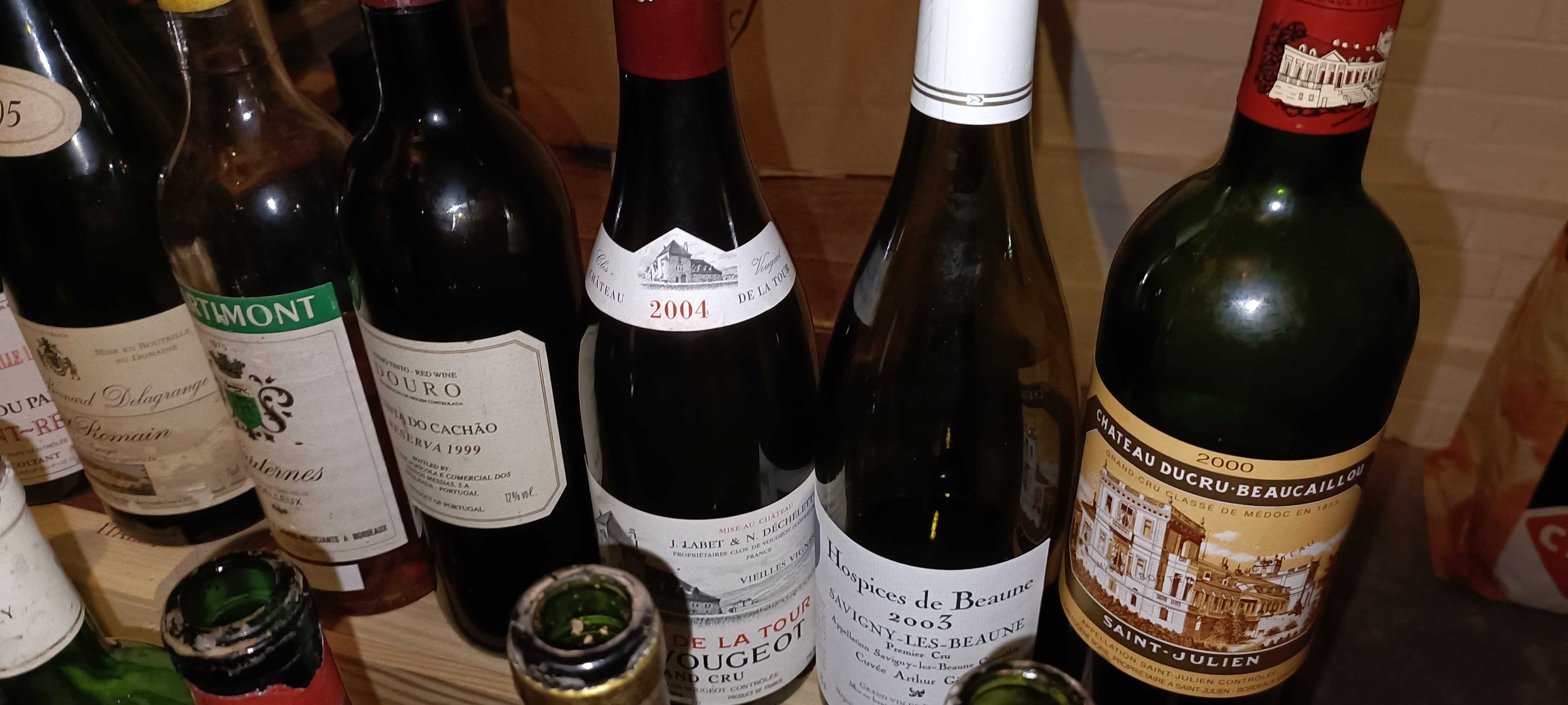 Een greep uit de selectie: Cos D'Estournel 1975, Baron de Ley Rioja 1982, Casillero del Diablo 1969 (ja, die ene kutwijn van de Appie), Château Ducru Beaucaillou 2000, Douro Vinho Tinto Caves do Cacão 1999, Châteauneuf-du-Pape (Wit) Château Mont-Redon 2000, Château Beaucastel Châteauneuf-du-Pape 2005, Hospices de Beaune Savigny-Les-Beaune Premier Cru Cuvée (AG) 2003, Sauternes van een niet bestaand huis uit 1970 en Château Bellevue Canon Fronsac 1961.