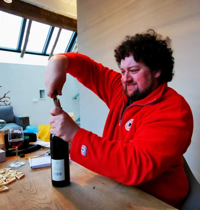 Het is heel belangrijk om moeilijk te kijken als je een fles opent..